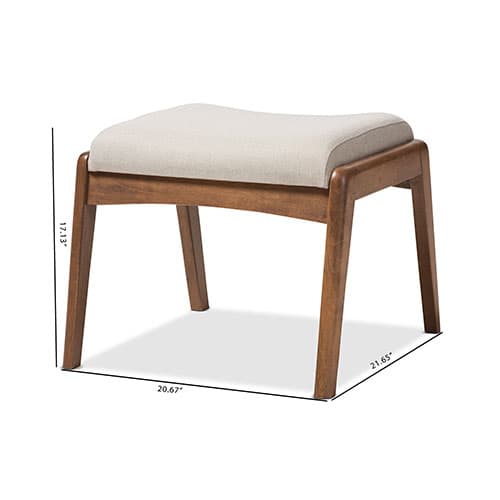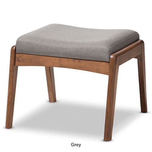 The Baxton Studio Roxy upholstered ottoman provides additional comfort to the elegant Roxy high back lounge chair. It is made with solid rubber wood in a stunning dark walnut finishing and grey fabric upholstery. It features a concaved design in the middle of the ottoman that makes this piece both durable and functional. Wipe with a dry cloth. Fabric, Polyester, Rubber Wood, MDF, Foam. Dimensions: 17.13”H x 20.67”W x 21.65”D.