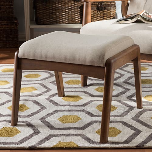 Description The Baxton Studio Roxy upholstered ottoman provides additional comfort to the elegant Roxy high back lounge chair. It is made with solid rubber wood in a stunning...