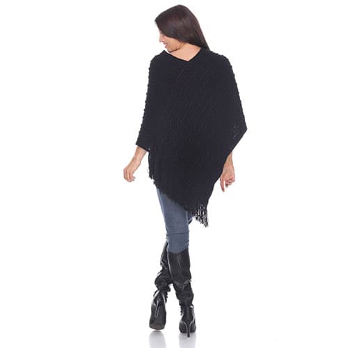 This Womens White Mark Melisandre fringe poncho is a comfortable and stylish design with a v-neck, and fringe accents. A definite must have for your everyday wardrobe. 100% Acrylic. Hand wash, hang dry.