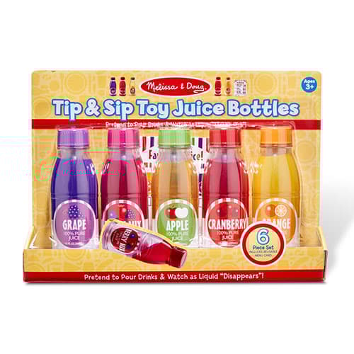 Description The Melissa & Doug® Tip & Sip Toy Juice bottles are perfect for pretending to pour refreshing drinks, and watch as the liquid in these five durable plastic juice...
