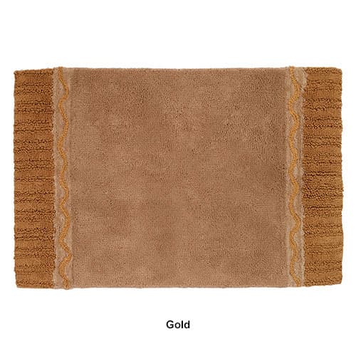 The Avanti Braided Medallion bath rug is tufted in in complementary shades of gold and adds an understated elegance to any bathroom or kitchen and features a non-skid backing. 100% Cotton. Machine wash warm and tumble dry low. Size 20 x 30.