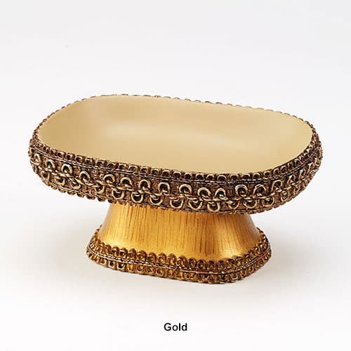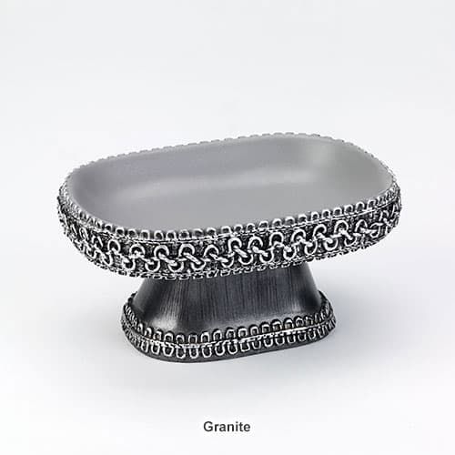 The Avanti Braided Medallion soap dish has a 2-tone body that is separated by the intricately carved braid and medallion adding an understated elegance to any bathroom or kitchen. Wipe with a damp cloth to clean. Dimension: 2.76”H x 4.33”W x 5.71”D.