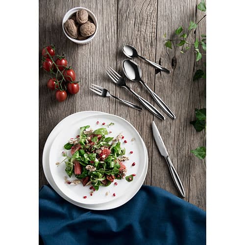 BergHOFF 30 piece Folio silverware set design is the epitome of elegance and style. This silverware is timeless and will be a great addition to any dining room. Service for 6 guests and is 18/10 stainless steel. Hand wash is recommended. Set includes: 6, 5 piece settings; Fork, Knife, Spoon, Cake Fork and Coffee Spoon.