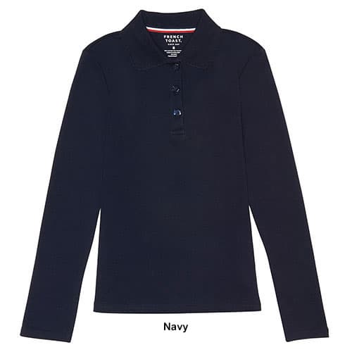 Description Girls (7-16) long sleeve three button closure interlock polo. 60% Cotton, 40% Polyester. Machine wash. Tumble dry. School uniform approved Care: Machine Wash, Tumble...