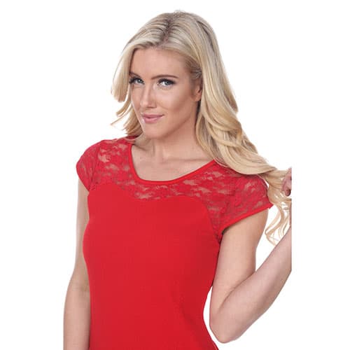This Womens White Mark Pelagia shift dress showcases beautiful short capped sleeves and a simple scooped-neckline. Its silhouette features lace cutouts on the front and back. Hand wash, hang dry. 95% Polyester, 5% Spandex.