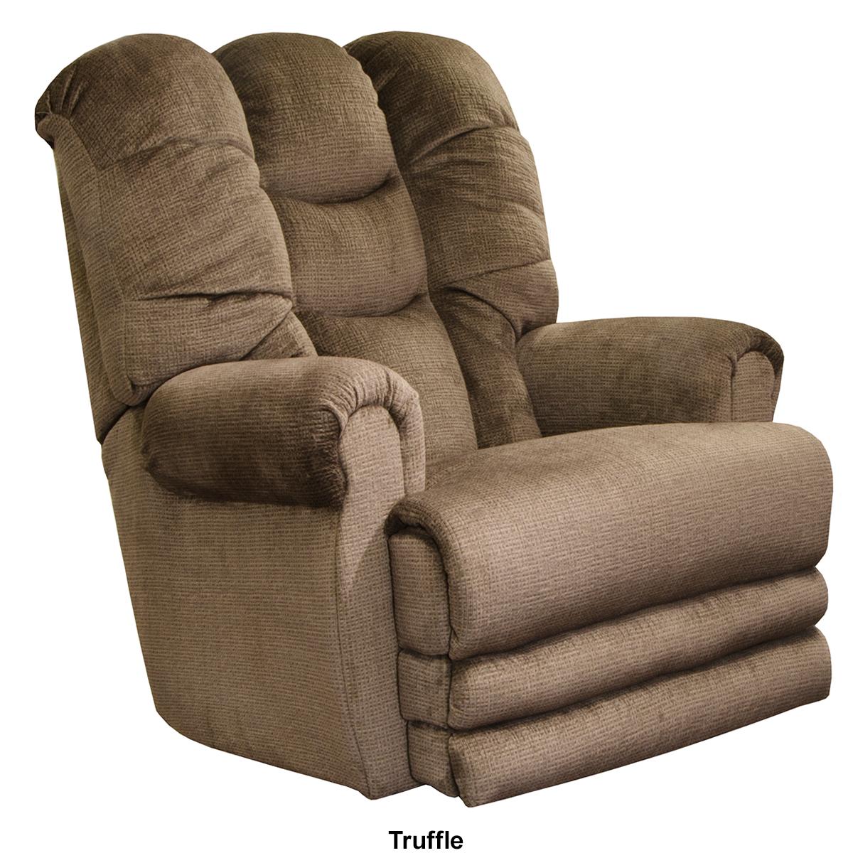 Catnapper Malone power lay flat big man´s recliner features sturdy steel seat box and reinforced frame rails supports up to 400 pounds. Comfort coil seating system with comfor-gel memory foam. Thick durable velvet fabric. 100% Polyester.