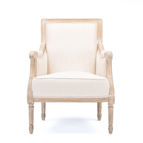 The Baxton Studio Chavanon linen traditional French accent chair brings traditional style to the modern age with a distressed, antiqued finish complete with authentic white streaking. This accent chair offers a visually versatile foam cushioned, beige cotton upholstery. The combined contoured and straight edged mindi wood frame speaks elegance while offering superior stability.