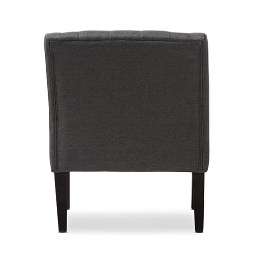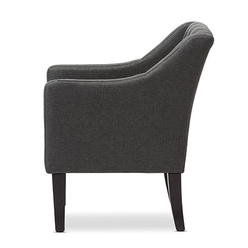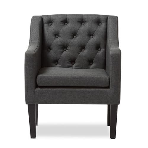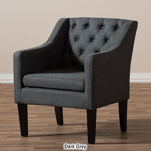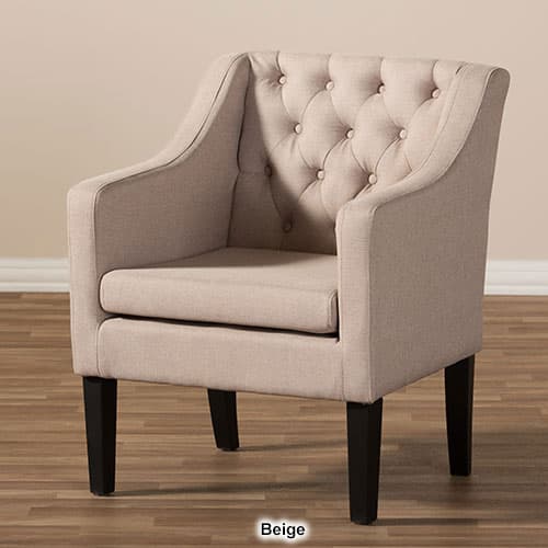 The Baxton Studio Brittany club chair features a modern styled, black stained solid wood chair with straight stained legs. This contemporary chair displays a tufted detail with linen upholstery. Spot clean only. Materials: Fabric and wood. Dimensions: 31.25.”H x 24.5”W x 24”D.