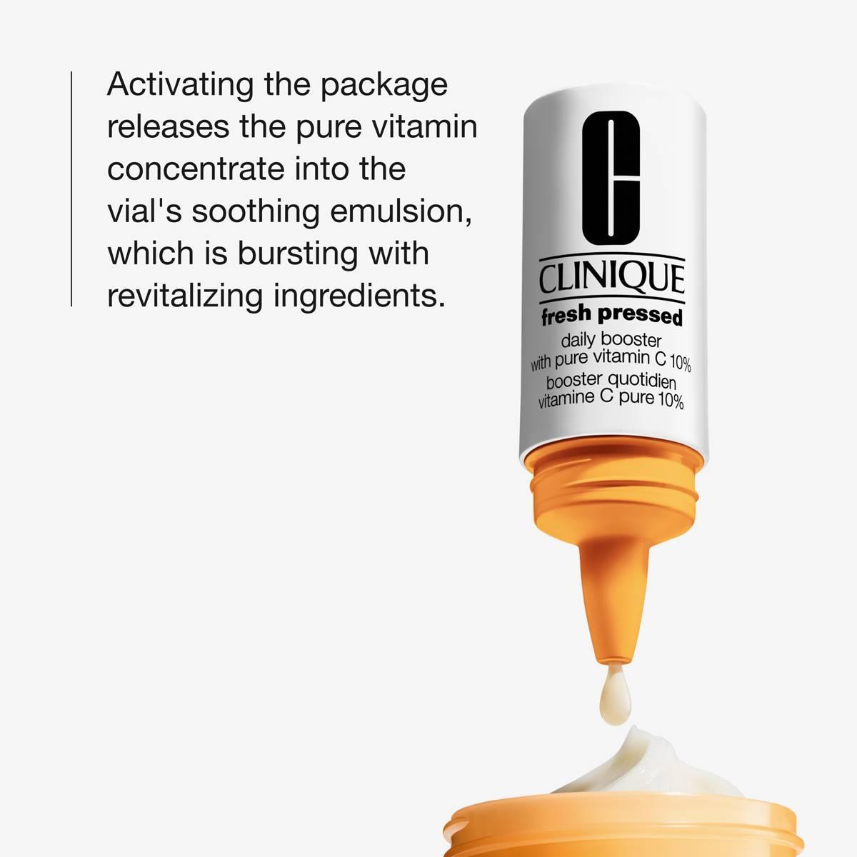 PRODUCT DETAILS- Clinique Fresh Pressed™ Daily Booster with Pure Vitamin C 10% is a unique brightening booster.