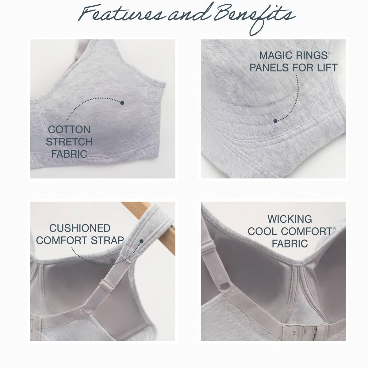Embrace flexibility with the soft 4-way stretch fabric design of this Womens Playtex 18 Hour Ultimate Lift & Support wire-free cotton blended bra. Its moisture wicking style allows you to stay dry and comfortable throughout the day, while also lifting and forming a natural shape. Features include adjustable comfort straps and the classic hook & eye back closure.