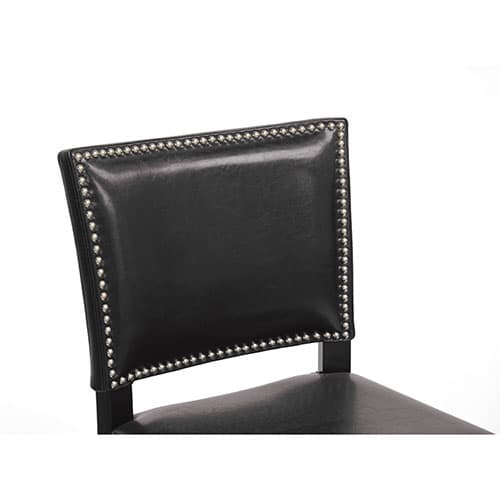 The Baxton Studio Aries 2-piece bar stool set features silver nail head trim, a solid rubber wood frame, a stainless steel foot rest, non-marking feet, and foam cushioning with iron springs to offer ample support and comfort. This stool set will fit in with a modern kitchen counter or a contemporary bar. Wipe with a damp cloth. Materials: MDF. Dimensions: 44.5”H x 18.5”W x 22”D.