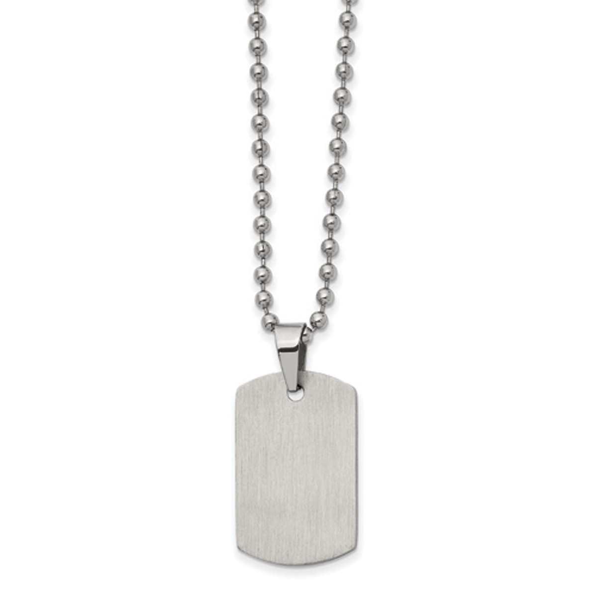 This Mens Gentlemen´s Classics™ stainless steel dog tag is striking and reversible. Its design can be engraved, is high polished, and hangs from a long ball chain that is secured with a fancy lobster clasp for closure.