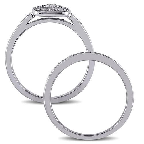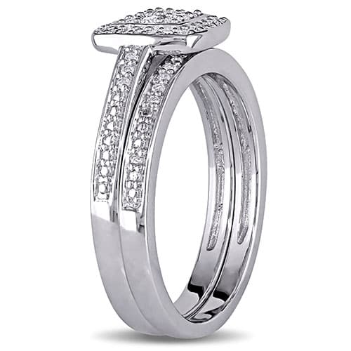 Description This Loveblooms™ sterling silver 1/4ctw. diamonds bridal ring set features a beautiful engagement ring in a square setting with white diamonds centering the ring...