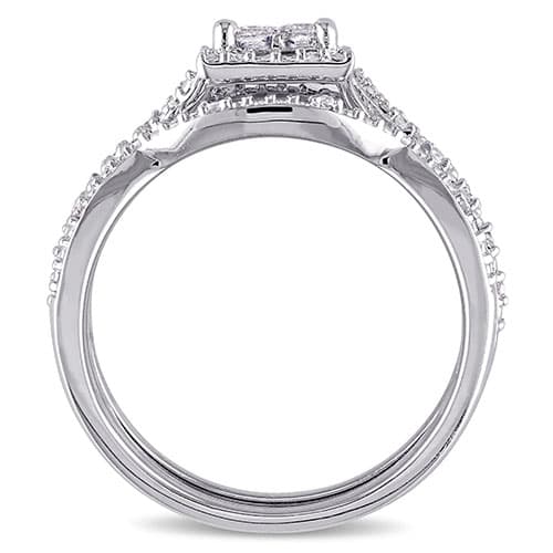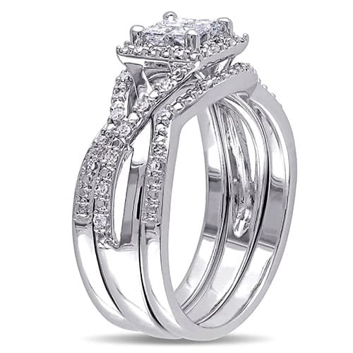 Description This stunning Loveblooms™ sterling silver 1/2ctw. princess and round diamond bridal ring set features a gorgeous engagement ring with princess cut white diamond...