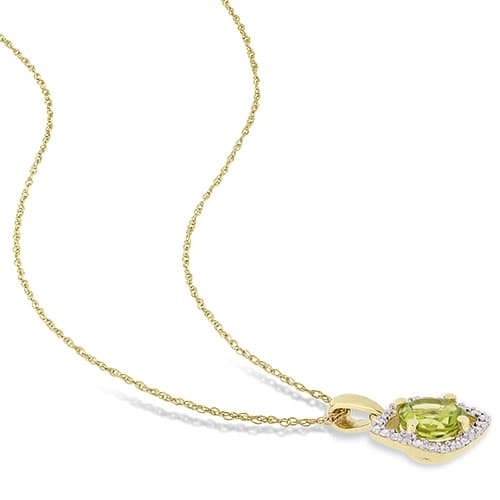 This Gemstone Classics™ necklace is crafted in 10kt. yellow gold and features a solitaire 7/8ctw. peridot stone in a unique floating 1/10ctw. 20 diamond halo design.