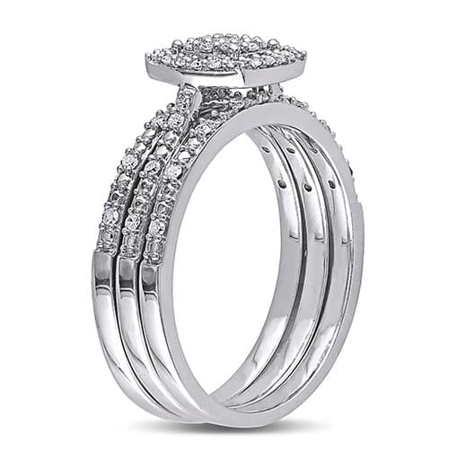 Description This stunning Loveblooms™ white gold 1/3ctw. diamond bridal ring set features an eye catching cluster style that is complemented with two beautiful semi-eternity...