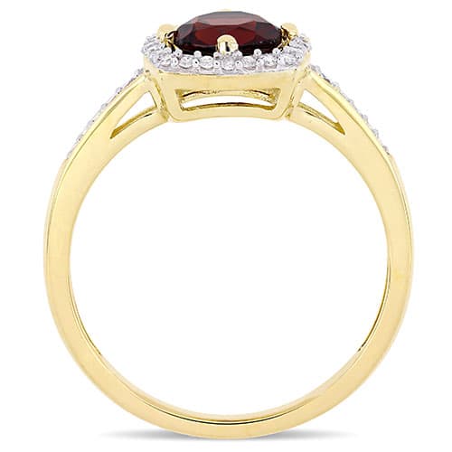 Description This Gemstone Classics™ 10kt. yellow gold and garnet square halo engagement ring will add a touch of elegance and sophistication to any look. It is crafted in...