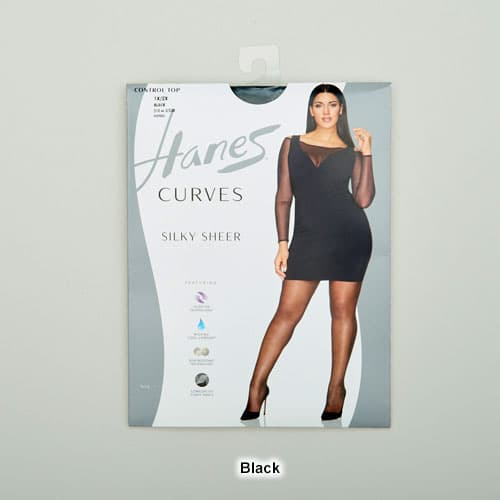 The Plus Size Hanes® Curves silky sheer control top pantyhose has glide on technology and a wicking cool comfort for all day comfort.