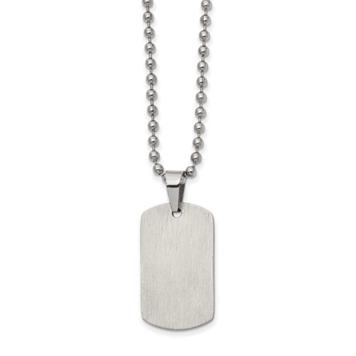 This Mens Gentlemen´s Classics™ stainless steel dog tag is striking and reversible. Its design can be engraved, is high polished, and hangs from a long ball chain that is secured with a fancy lobster clasp for closure.