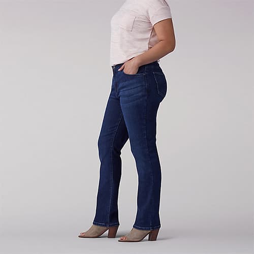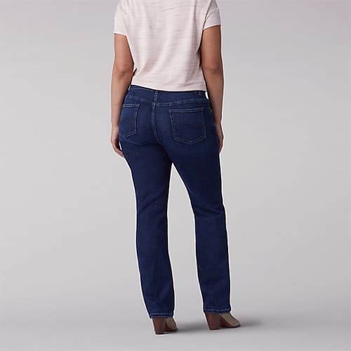 Plus Size Lee® Flex Motion straight leg jeans features a flattering mid-rise fit that offers a comfortable stretch. Its casual look is perfect for that ideal everyday design. Features include 4 functional pockets, elastic waistband, belt loops, and a zip fly with button front closure.
