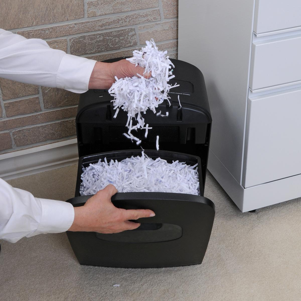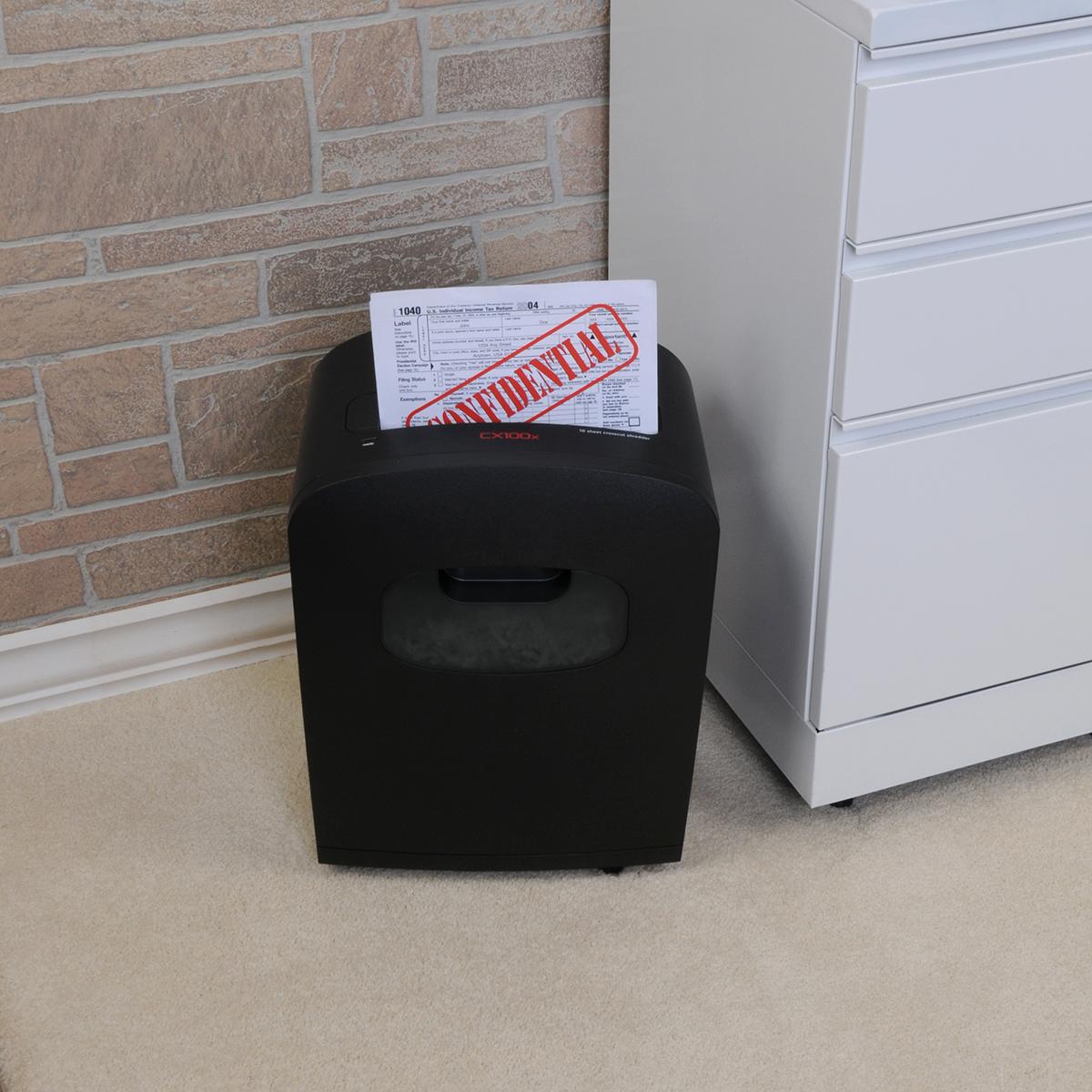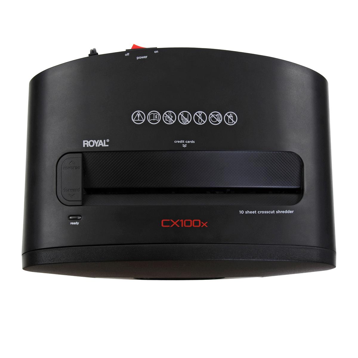 The Royal 10 sheet cross cut shredder is the prefect personal/home office console shredder. The powerful 1/2 horsepower motor shreds up to 10 sheets of paper at one time into small unreadable pieces. The 100X also shreds credit cards - completely destroying all printed and digital information.