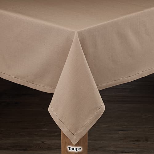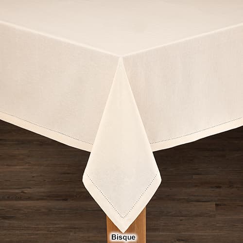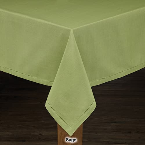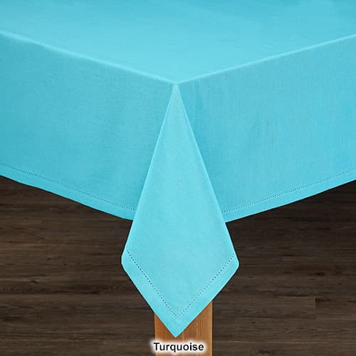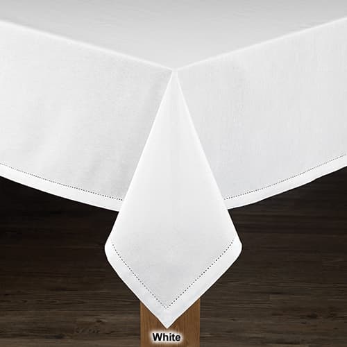 Description This Amethyst tablecloth has just the right elegant touch. It features a 1-inch deep hemstitching with mitered corners. Machine wash cold, do not bleach.Tumble dry...