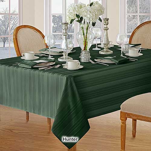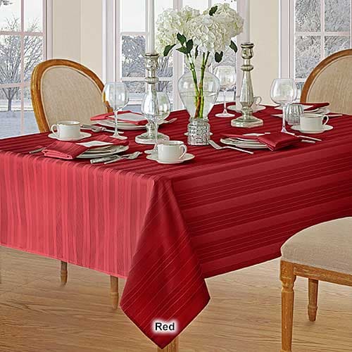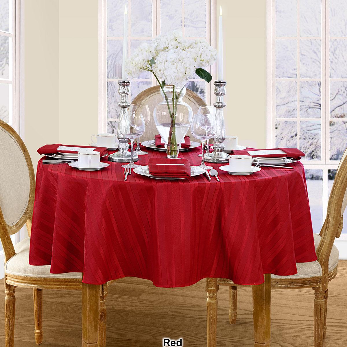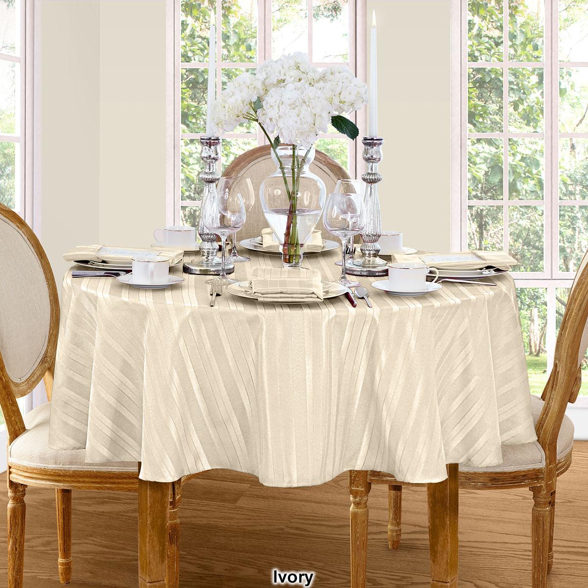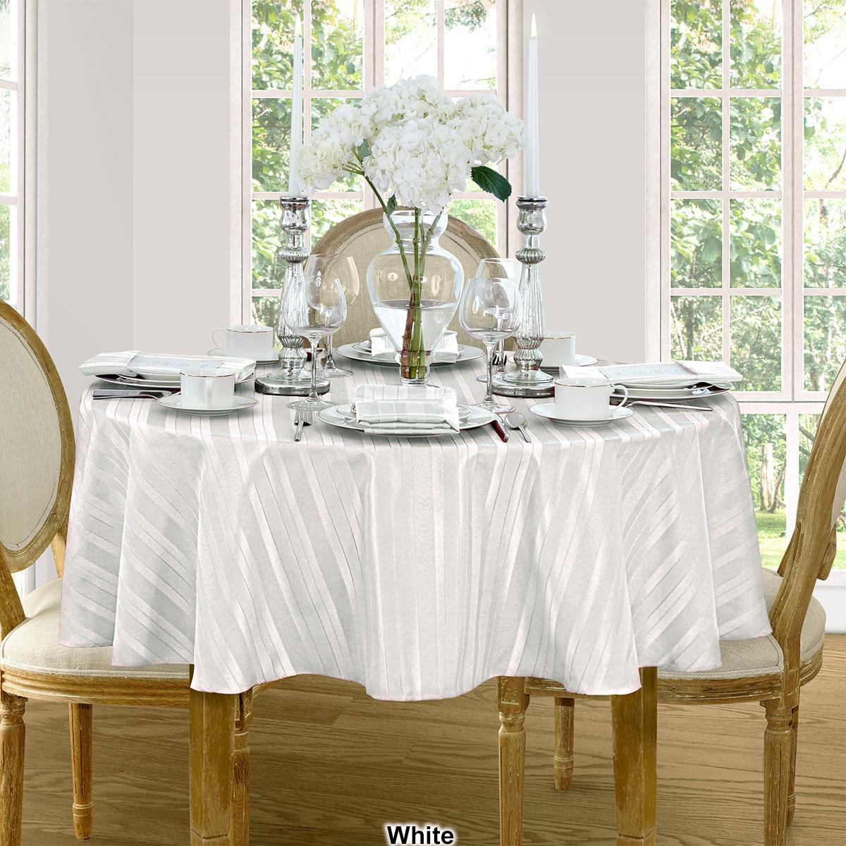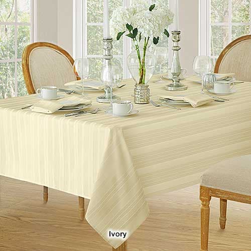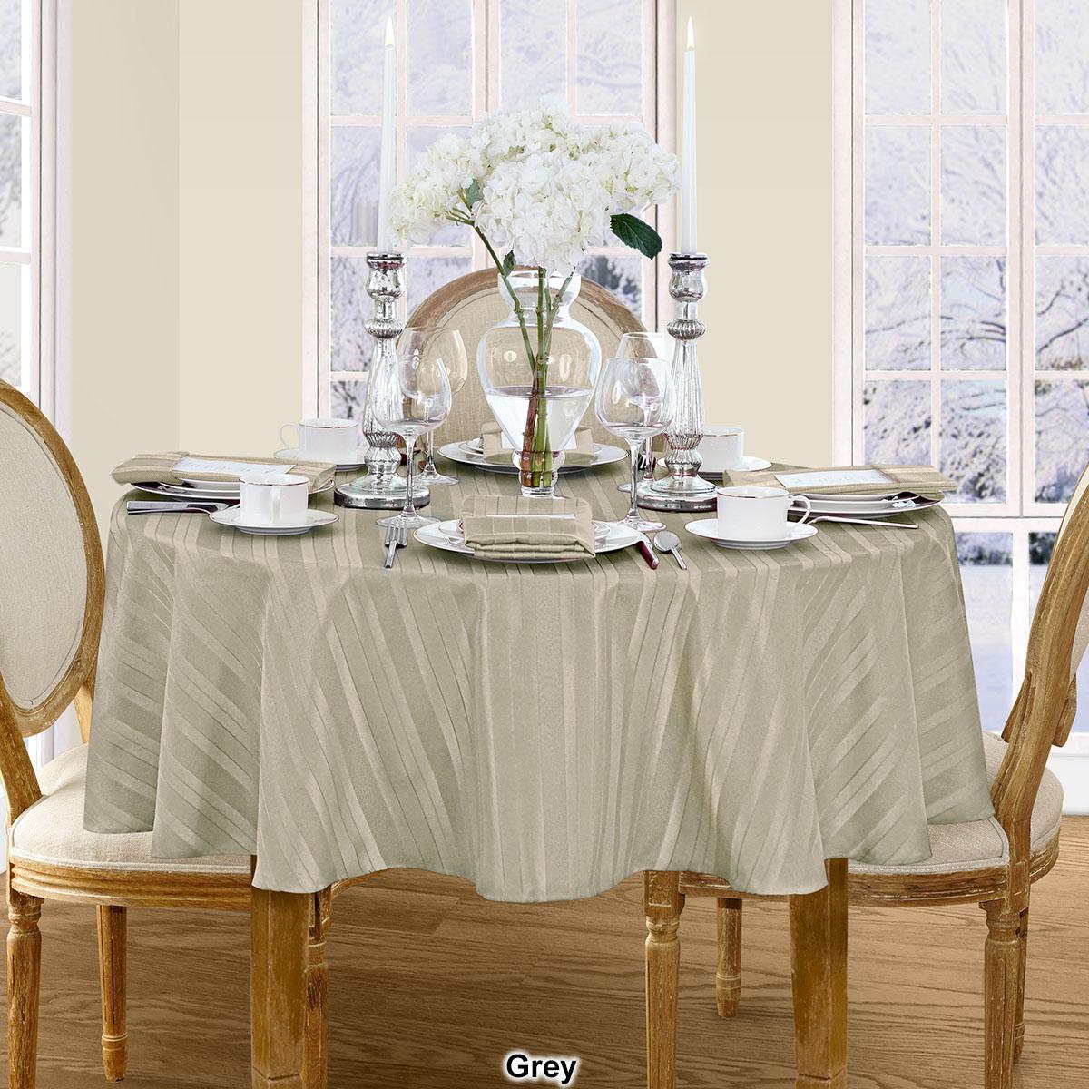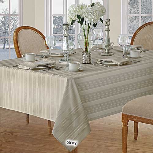 This Elrene Denley stripe tablecloth has a modern style making it perfect for any room décor. It features a microfiber solid modern stripe pattern and is stain and water resistant.