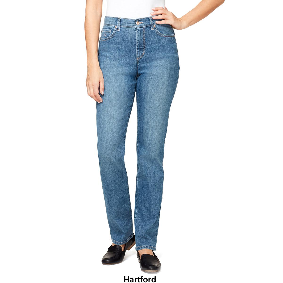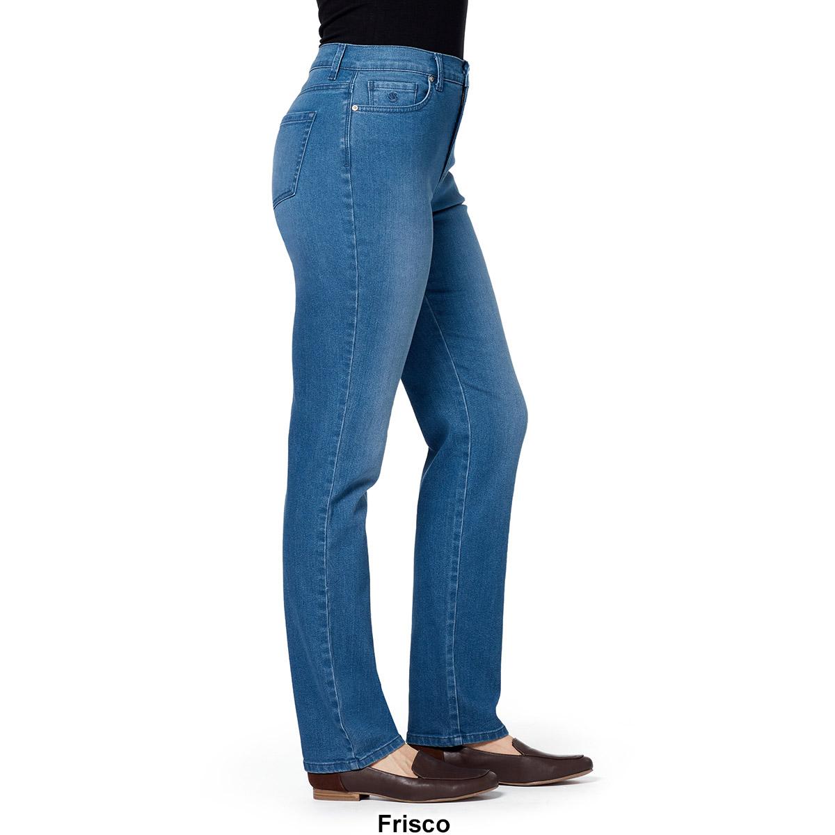 Description Make getting dressed easy and stylish with these Petite Gloria Vanderbilt Amanda jeans. These solid jeans are average length with straight legs, functional front and...