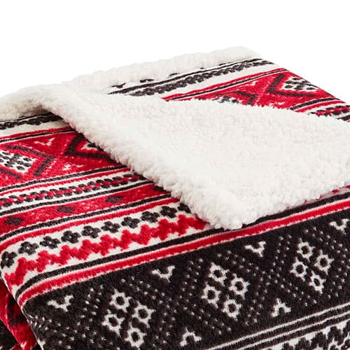 This Eddie Bauer Classic Fair Isle black ultra-plush fleece sherpa throw blanket is perfect to curl up by the fire or just to spend an evening country style by curling up with a soft blanket. Its a warm winner, and its reverse side turns into a snuggly sherpa fleece.