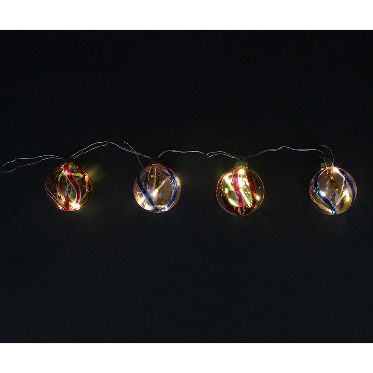 These elegant glass ball Christmas ornaments by Northlight Seasonal PENN speak for themselves. The pink balls have blue and amber colored stripes, and the yellow balls have red stripes, all accented with glitter. Featuring 20 clear micro bulbs on a clear wire with 5 bulbs in each ornament. The lights are UL listed for indoor use only and have a steady burning bulb. If one bulb burns out the rest will stay lit. The ornaments are all connected to the light wire, but come ready-to-hang on gold cords. These ornaments are battery-operated, requires 3 “AA” batteries, not included. The battery pack has an on and off switch.