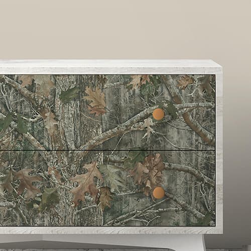 This RoomMates® Kanati camo peel and stick wallpaper is sophisticated and chic, and will add instant flair to any space or décor! This camo pattern is perfect on any clean flat surface in minutes. Completely safe for walls and it leaves surfaces free of sticky residue. Made with Vinyl. Wipe with a damp cloth to clean. Overall dimensions: 16.5”H x 20.5”W x .15”D.