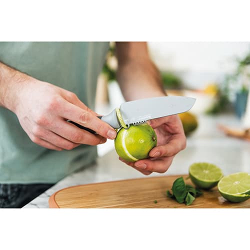 This BergHOFF Leo grey vegetable knife and zester is ideal for veggie snack, a hearty soup or a summer salad. With the Leo vegetable knife you can chop, slice and dice ingredients in no time. The non-stick stainless steel blade glides through vegetables like butter, making light work of your food prep, while the soft-touch handle helps you to get a comfortable grip. An added bonus is the integrated zester which allows you to brighten up your dishes with an acidic touch.