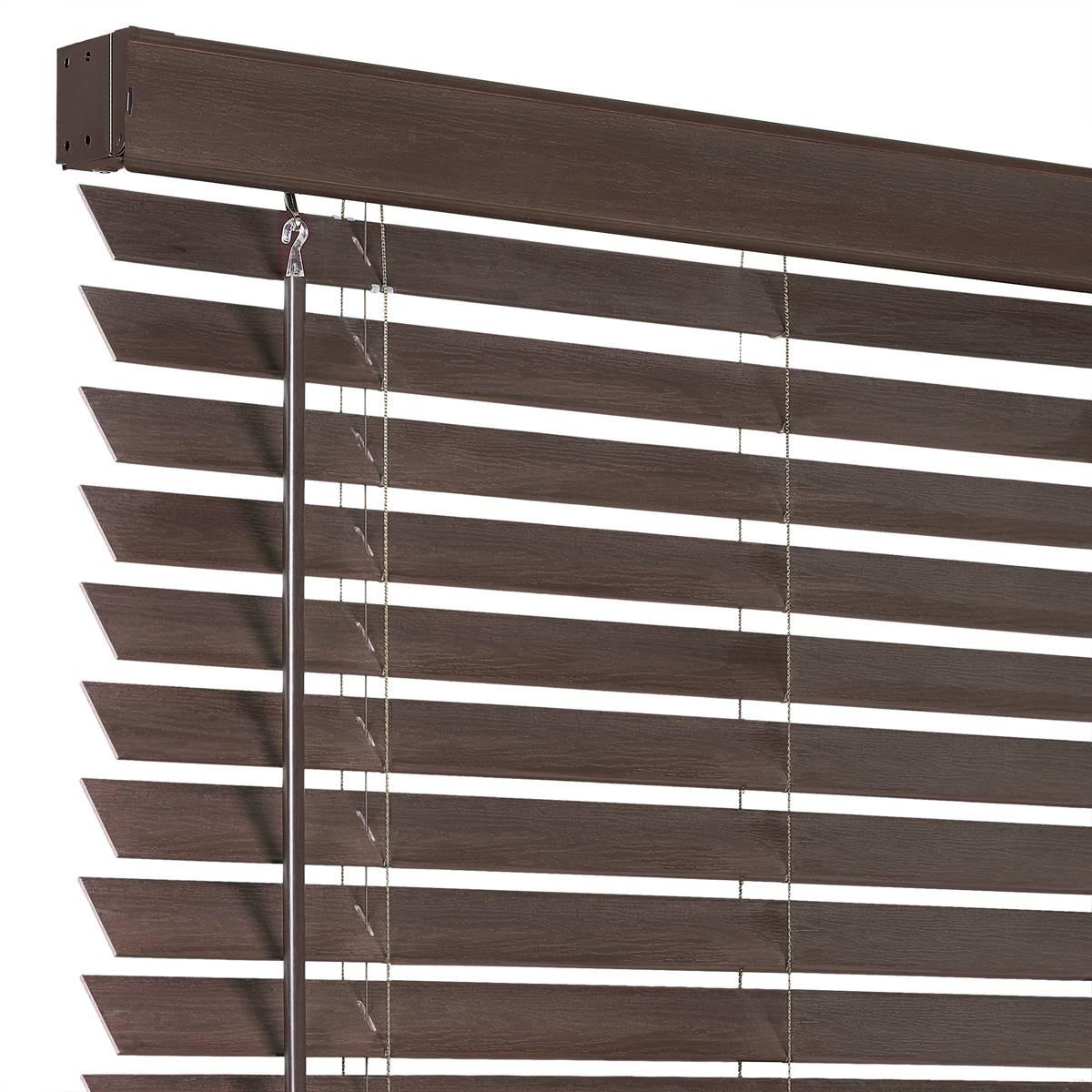 Achim Cordless Madera Falsa 2" room darkening faux wood blind is an easy to operate, cordless window treatment that can be used in any room. The faux-wood looks sleek and modern, at a fraction of the price. No exposed lift cords, making it a safe option for those with small children and pets. Installs, operates, and cleans easily. Wood- like slat. Valance included. Installation hardware included. To operate- Raise or lower bottom rail to desired position. Tilt wand to open and close blinds. Will fit windows 3/8" smaller and 1/2" wider than stated size. Size availability varies with; 23, 27, 29, 31, 32, 33, 34, 35, 36, 43, 45, 45 inch widths x 64 inch length.This item requires oversize delivery. Please refer to the Order Summary in the Shipping step at checkout for delivery charge.When ordering multiples of this item, additional shipping fees may be charged. Before levying such charge, we will contact you with the proposed amount of the charge. If you do not want to accept the surcharge, we will cancel your order without any penalty to you.