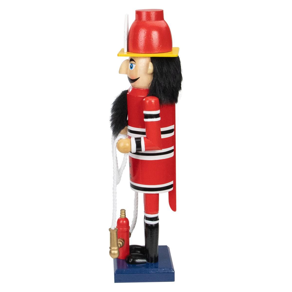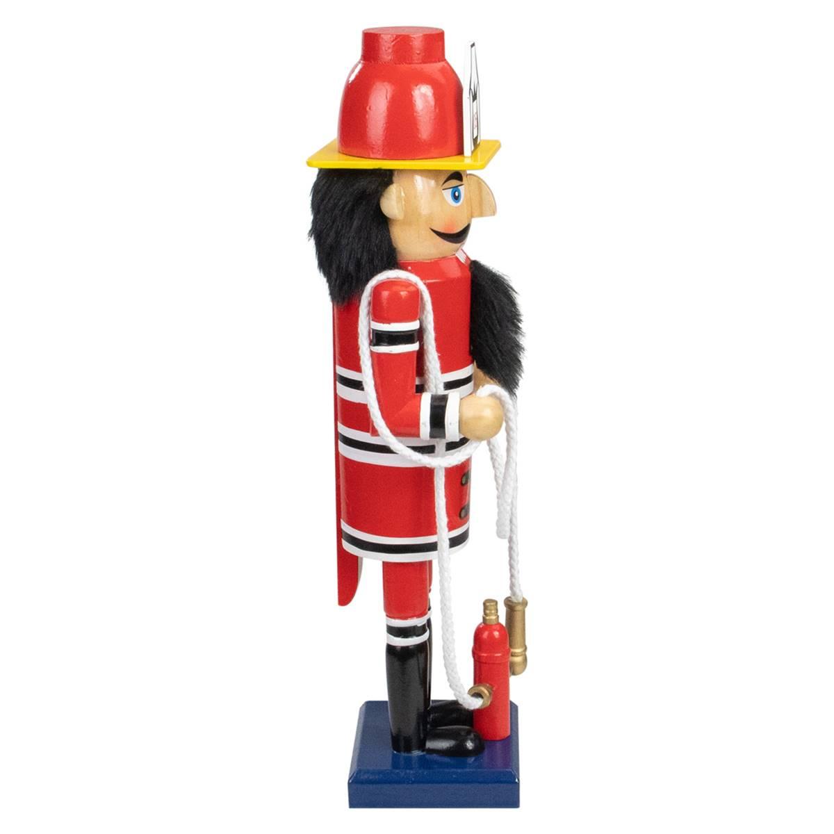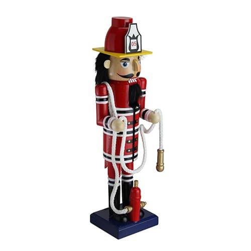 Description This Northlight Seasonal 14 inch red fireman with a hose nutcracker is shown dressed as a fireman in red gear and helmet. He holds a white hose that can be pulled...