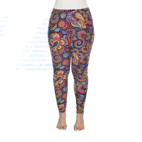 Pair these Plus Size White Mark printed paisley leggings with a top and any shoes for a simple, casual look. Made from a spandex and polyester blend, these leggings are comfortable and soft against the skin. Fits sizes 12-20, inseam 28´. 100% Polyester. Hand wash, hang dry.