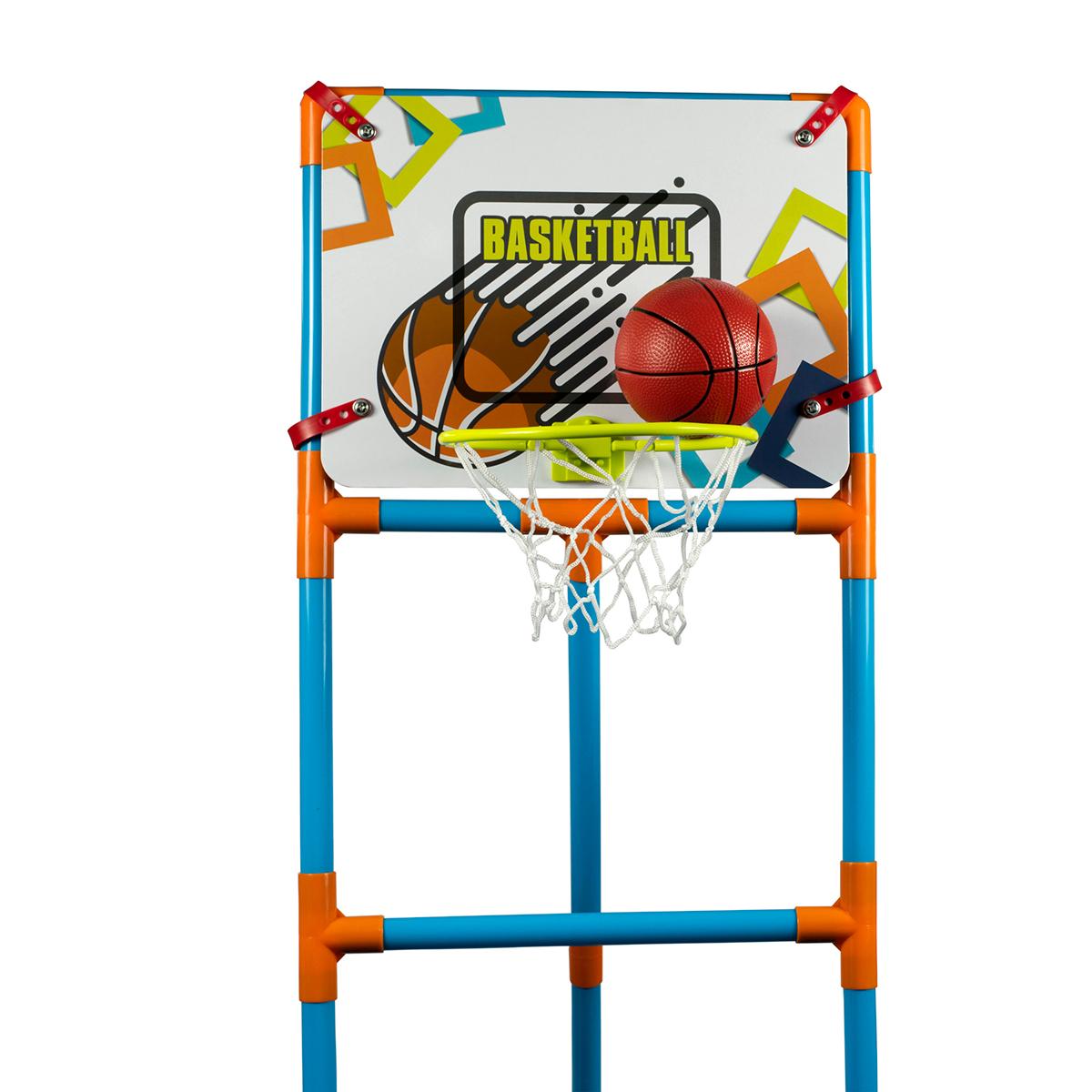 • Includes: Net, Basketball, Stand, Soccer Ball, Basketball, Inflator, and 4 Grand Stakes