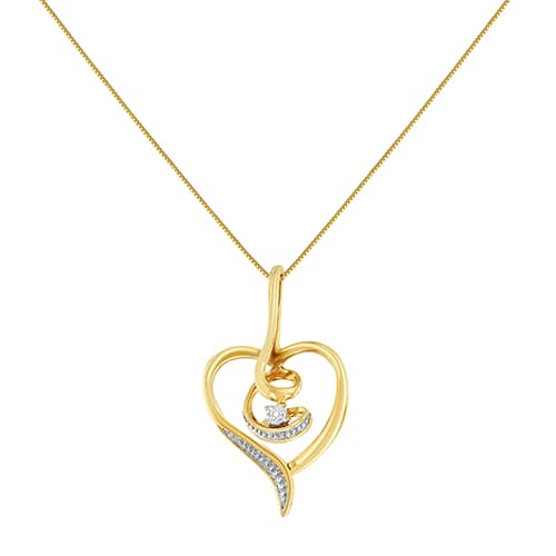 Description This Espira 10kt. gold round cut diamond swirl heart pendant necklace symbolizes a love that never ends. Its impeccably designed yellow gold heart pendant swirls at...