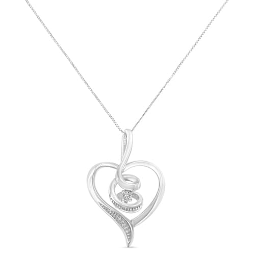 This Espira 10kt. white gold round cut swirl diamond heart pendant necklace symbolizes a love that never ends. Its stunning design features a white gold heart pendant with a swirl in the center circles around to a large diamond in the center. Stone color: l-J. Clarity: I2-I3.
