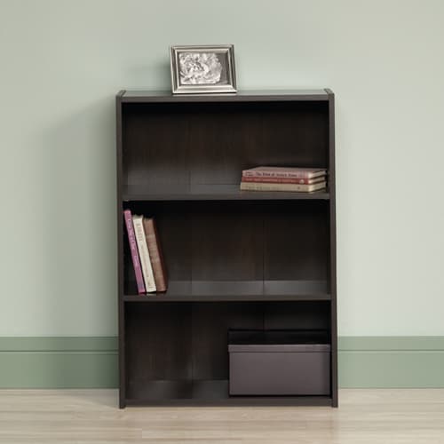 Sauder Beginnings 3 shelf bookcase features two adjustable shelves and an enclosed back panel.