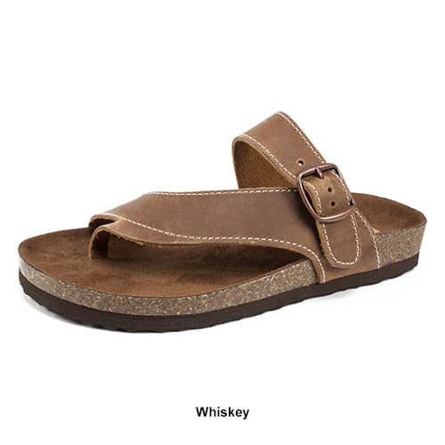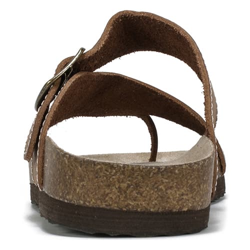 These Womens White Mountain Carly comfort footbed sandals showcases an effortless single loop around the toe, leather uppers, and a molded cork footbed for maximum comfort. They are finished with a sturdy metal buckle on the upper strap for a custom fit.