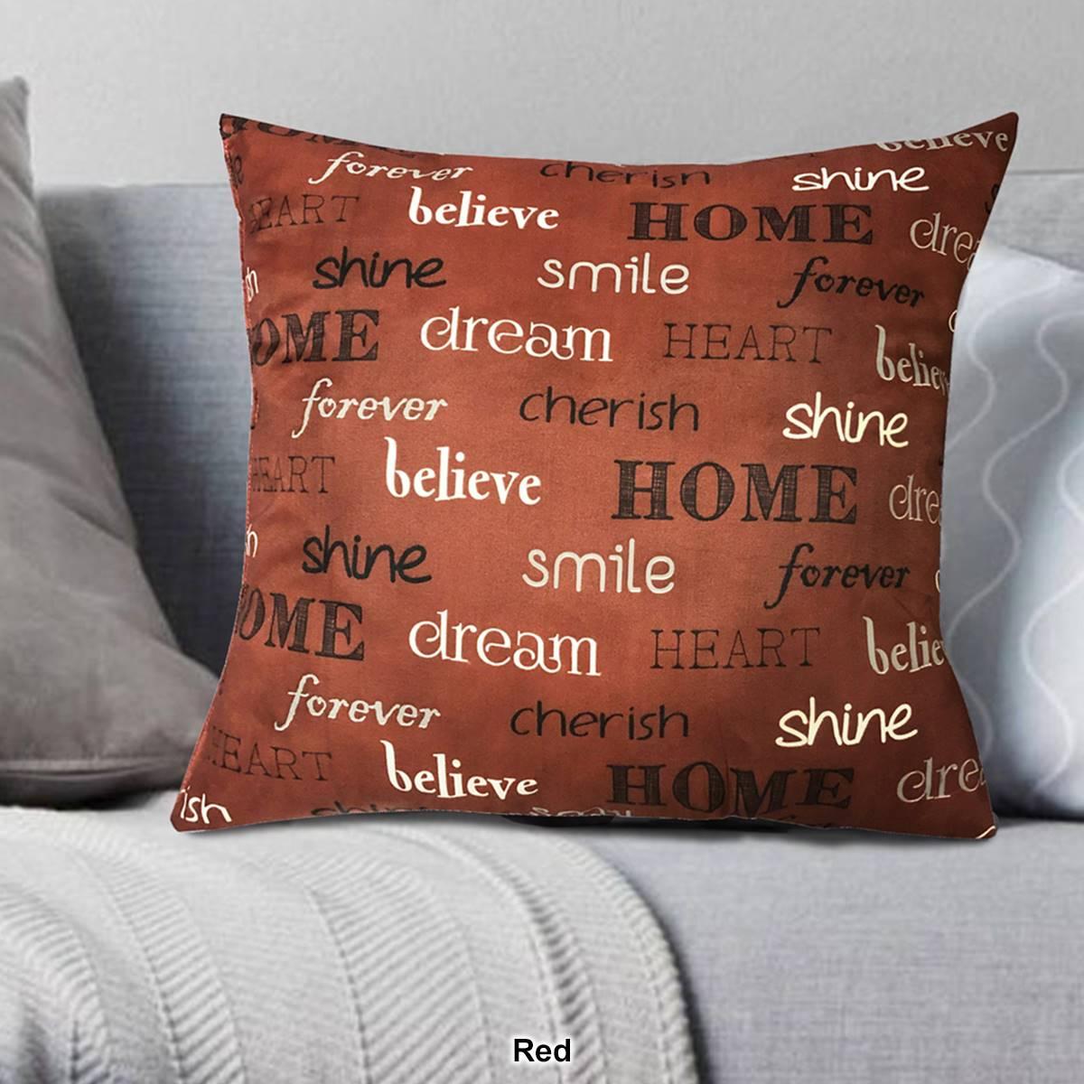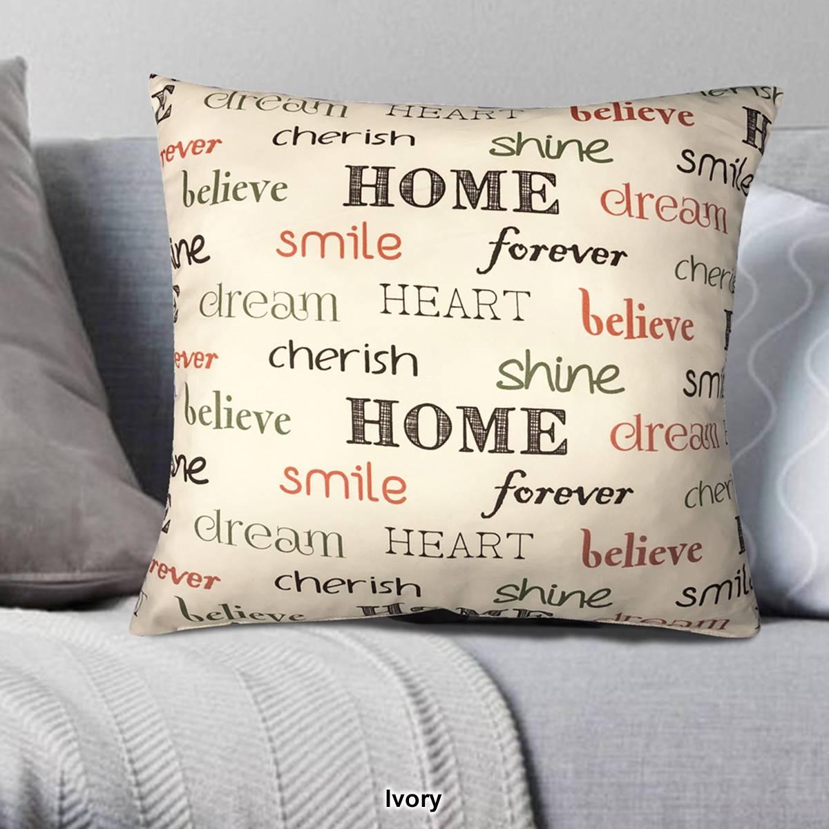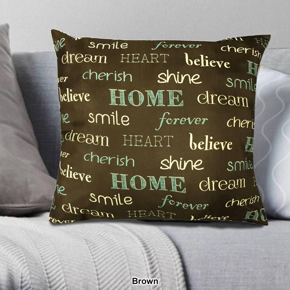 The Universal Home Fashions Inspire decorative pillow has inspirational words that help remind us of the important things in life. After a hectic day, it´s refreshing to be reined in, nestled on your sofa or bed and reminded to smile, cherish, and believe in your dreams. Polyester. Size: 18” x 18”.