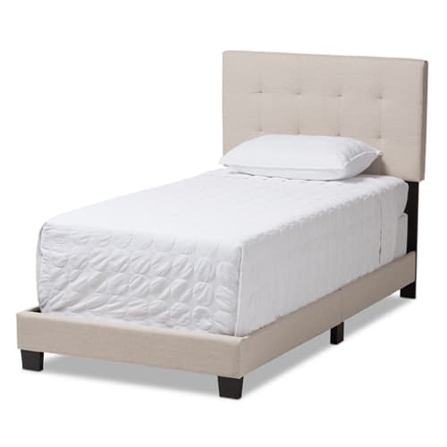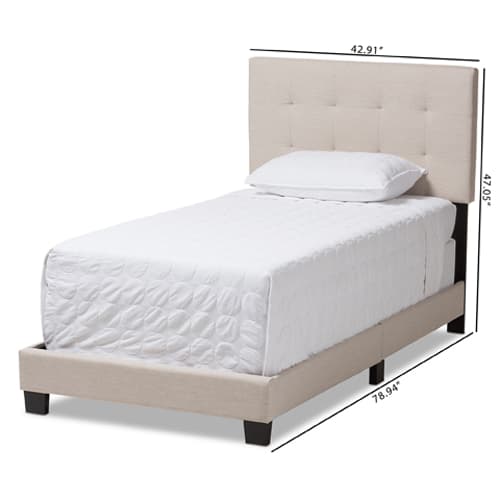Description This Baxton Studio Brookfield fabric twin size bed will have you stay and sleep in comfort with this modern and contemporary fabric upholstered grid-tufting bed. It...