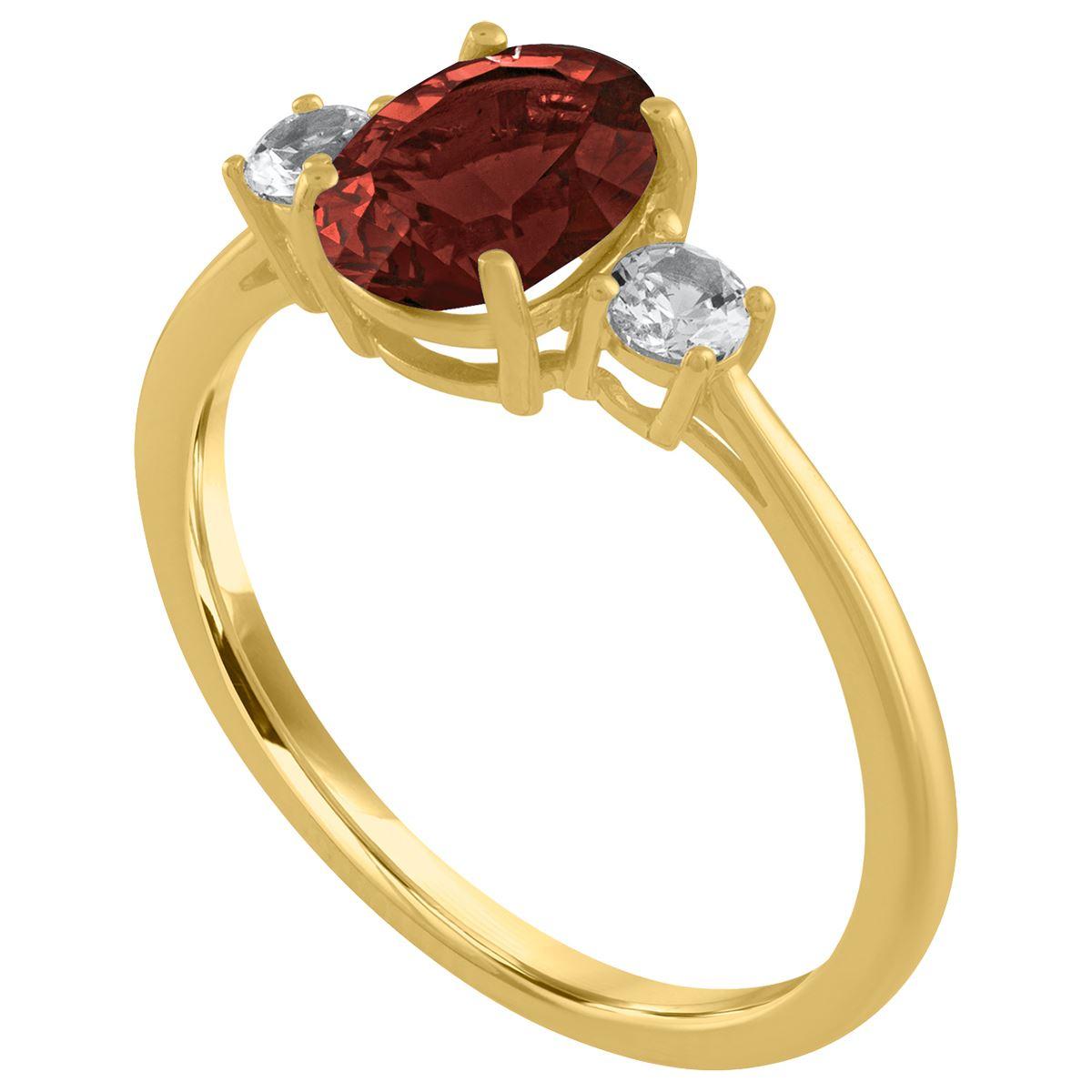 Description Set in 10kt. yellow gold, a stunning oval shaped created garnet gemstone is accented with created white sapphire stones in this beautiful Gemstone Classics™ ring....