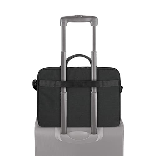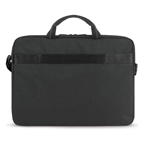 This Solo Rivington slim briefcase is a stylish piece. It features a fully padded 15.6 inch laptop compartment, zippered front pockets, and adjustable shoulder straps for comfort. Made with Polyester. Dimensions: 12”H x 16”W x 2.5”D.