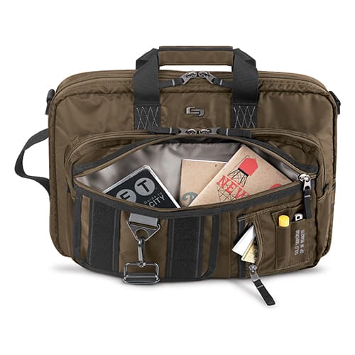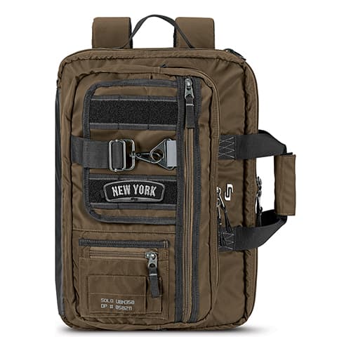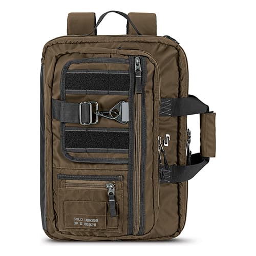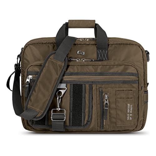 Description This Solo Zone Hybrid briefcase is a unique and versatile piece that transforms into a backpack! It features a fully padded 15.6 inch laptop compartment with an...
