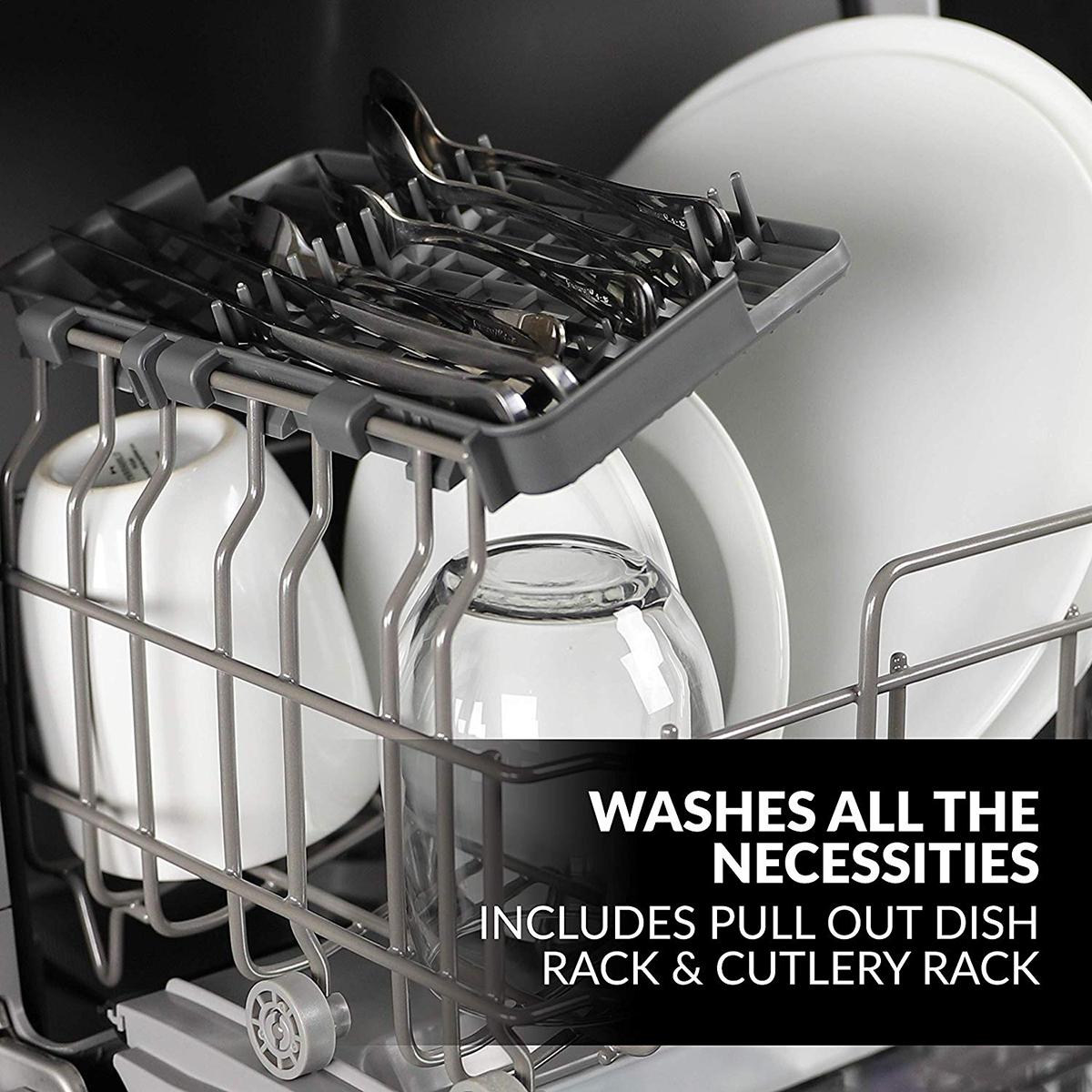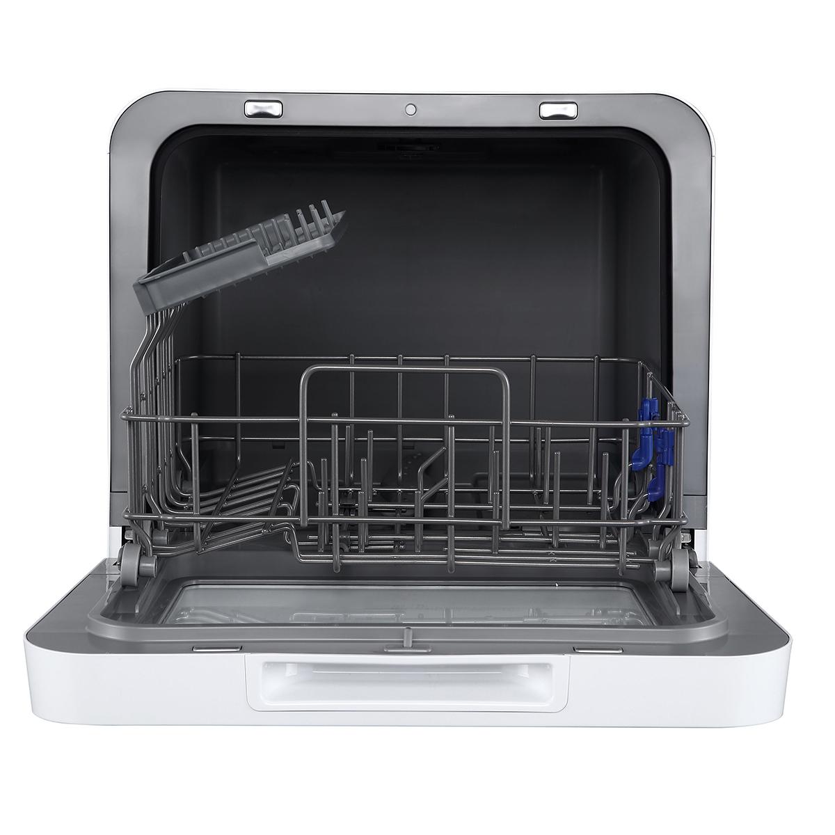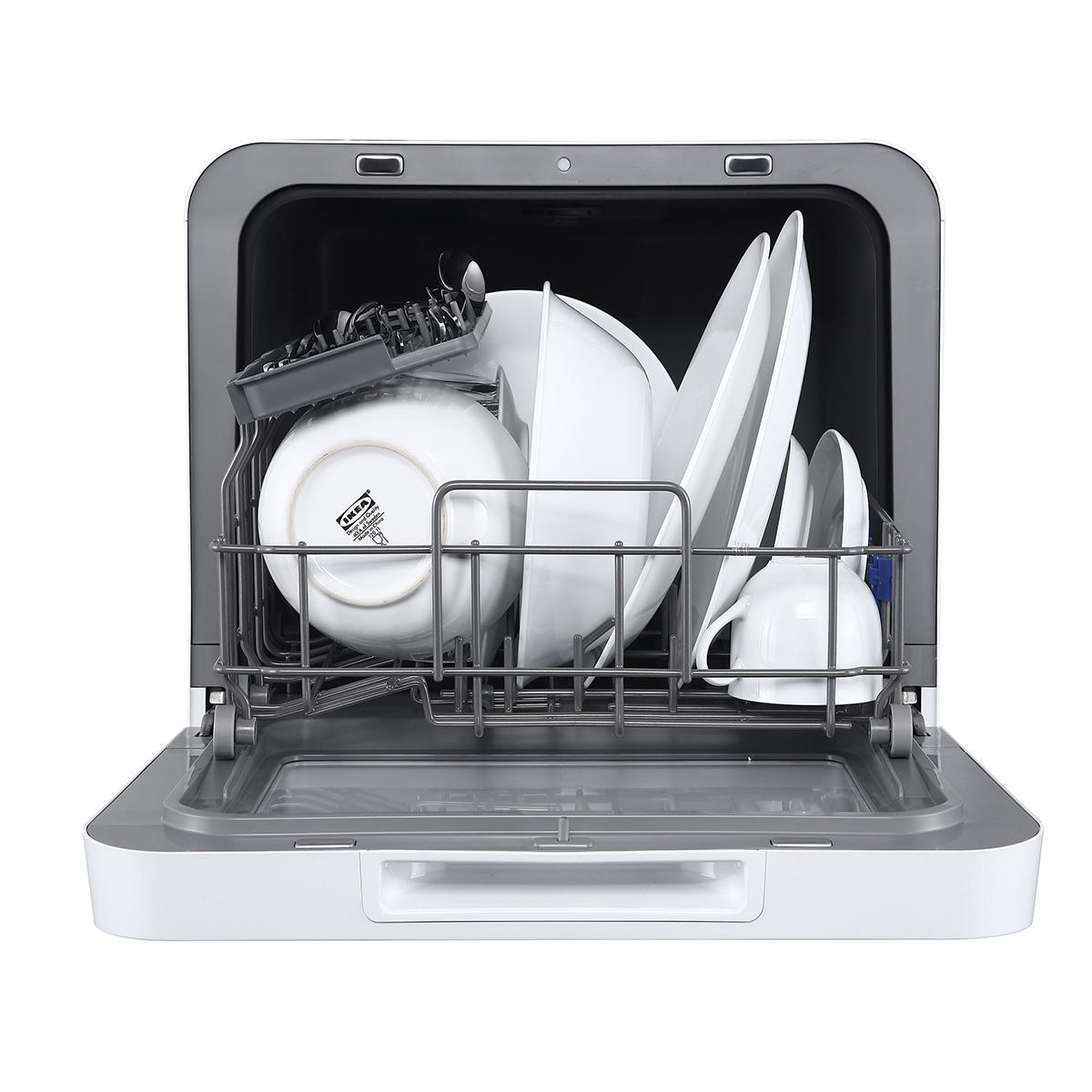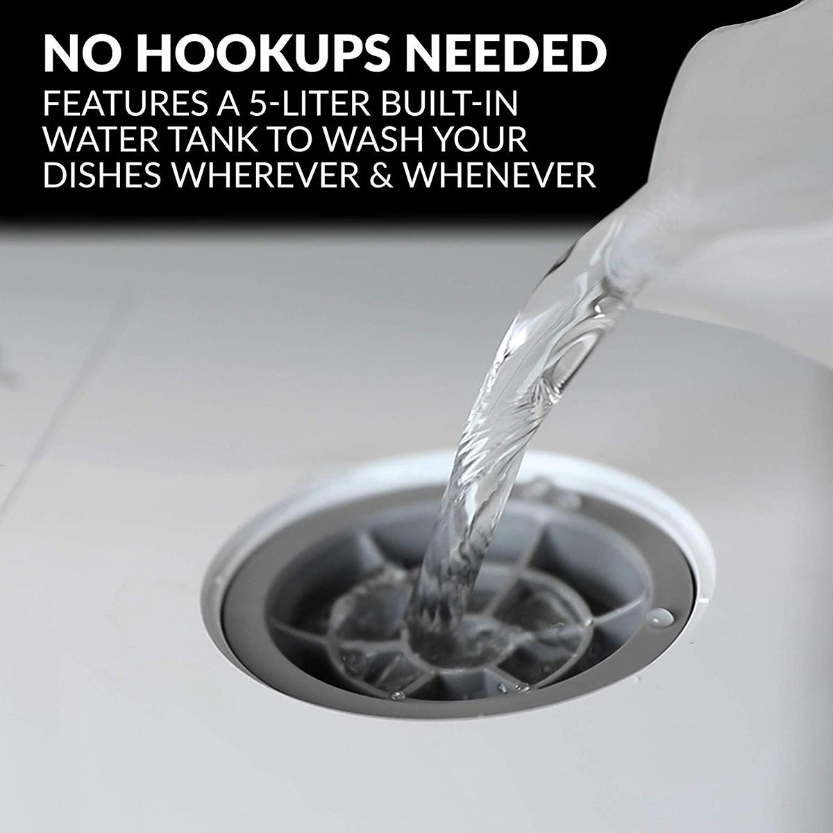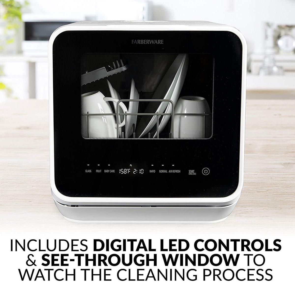 If you have electricity, water, and 40 minutes, you can clean your dishes anywhere and anytime! Whether it´s camping, on your boat, RV, in your kitchen, dirty dishes are a thing of the past. The Farberware® Professional dishwasher can be placed on any countertop or sturdy table and gives you the choice of using its built-in water tank or a quick faucet hookup. It offers 3 different wash cycles and can also be used to steam-clean baby bottles.This item requires oversize delivery. Please refer to the Order Summary in the Shipping step at checkout for delivery charge.Model: FDW05ASBWHA