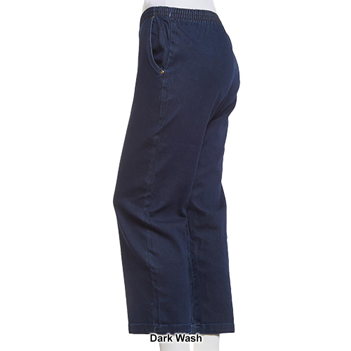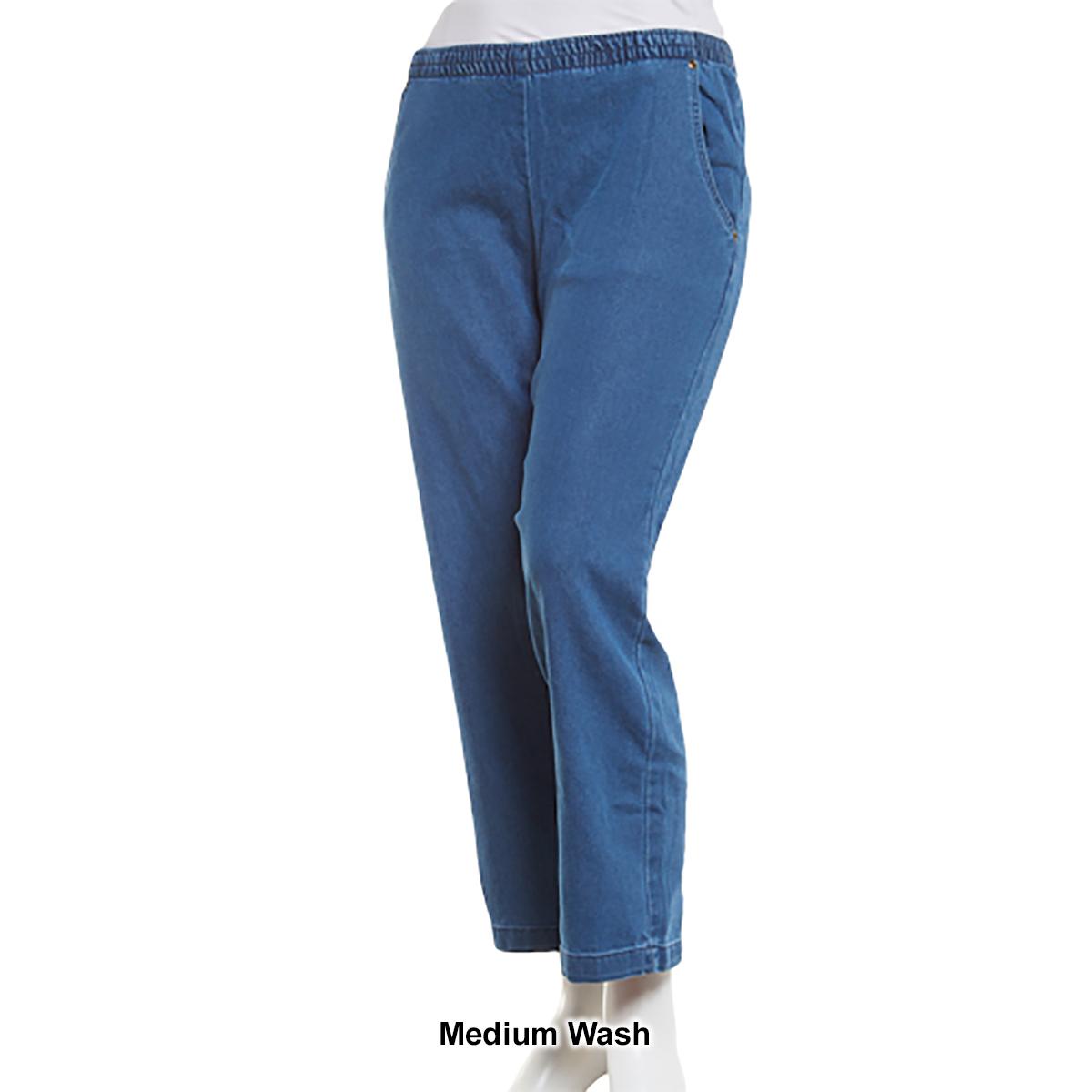 Make casual dressing simple with the elasticized waist of the Womens Hasting & Smith stretch pull-on denim pants with a short length design. Includes 2 functional pockets. 27 inch inseam. 75% Cotton, 24% Polyester, 1% Elastane. Machine wash. Tumble dry.