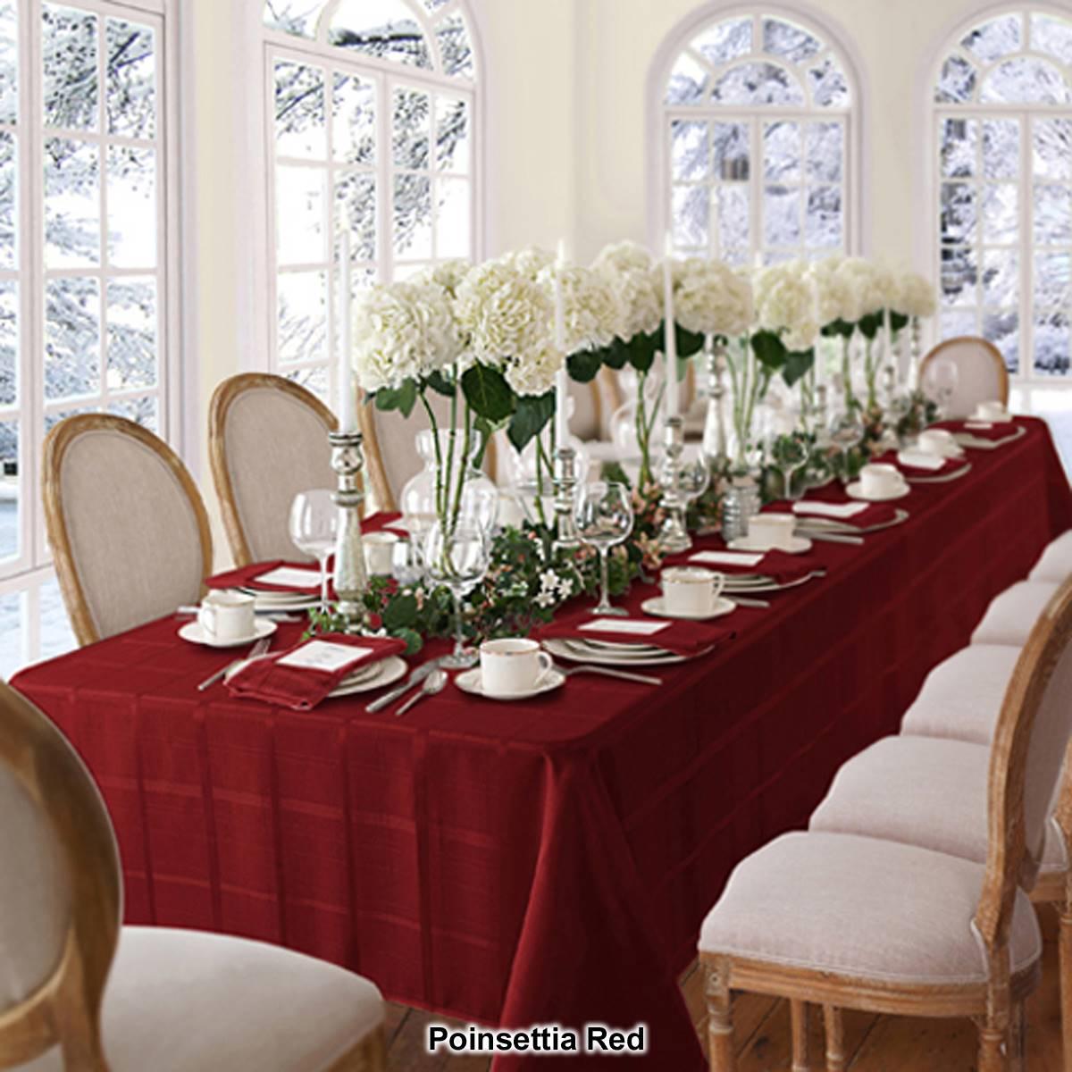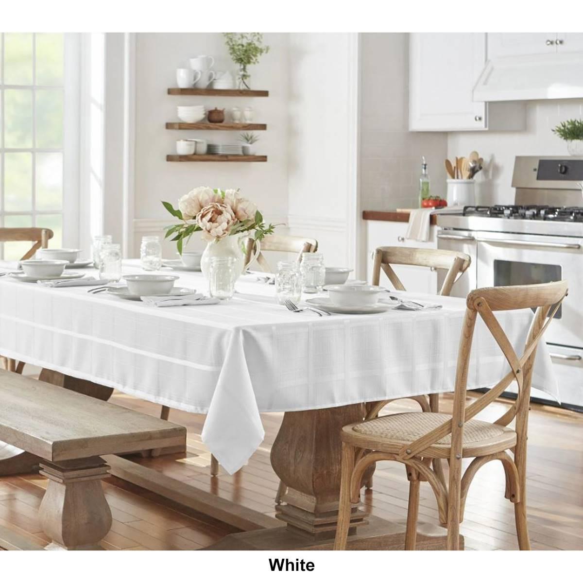 Description The Elrene Elegance plaid tablecloth features a gorgeous allover plaid pattern. It is easy to care for and is stain and water resistant. Gentle cycle with like...