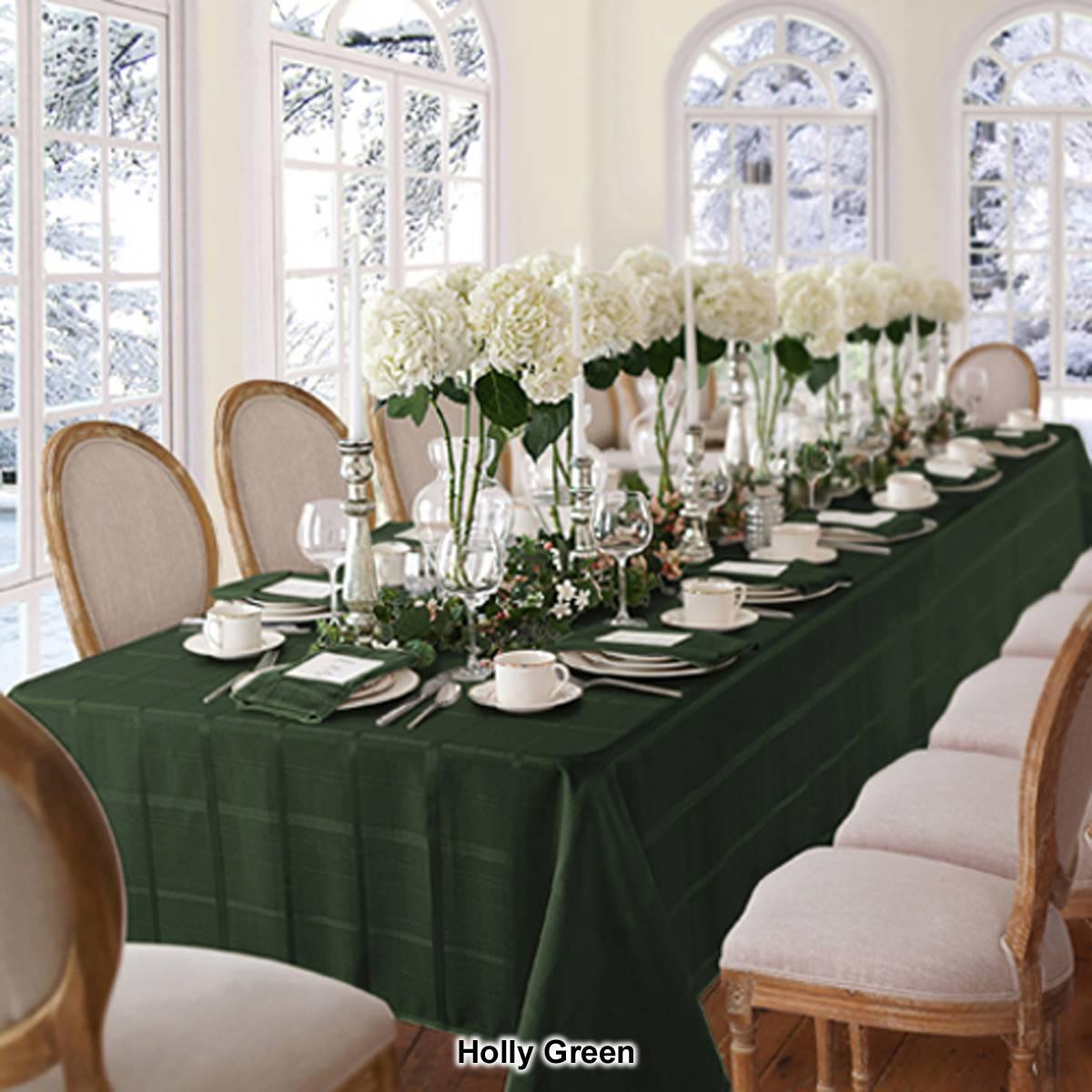 The Elrene Elegance plaid tablecloth features a gorgeous allover plaid pattern. It is easy to care for and is stain and water resistant.