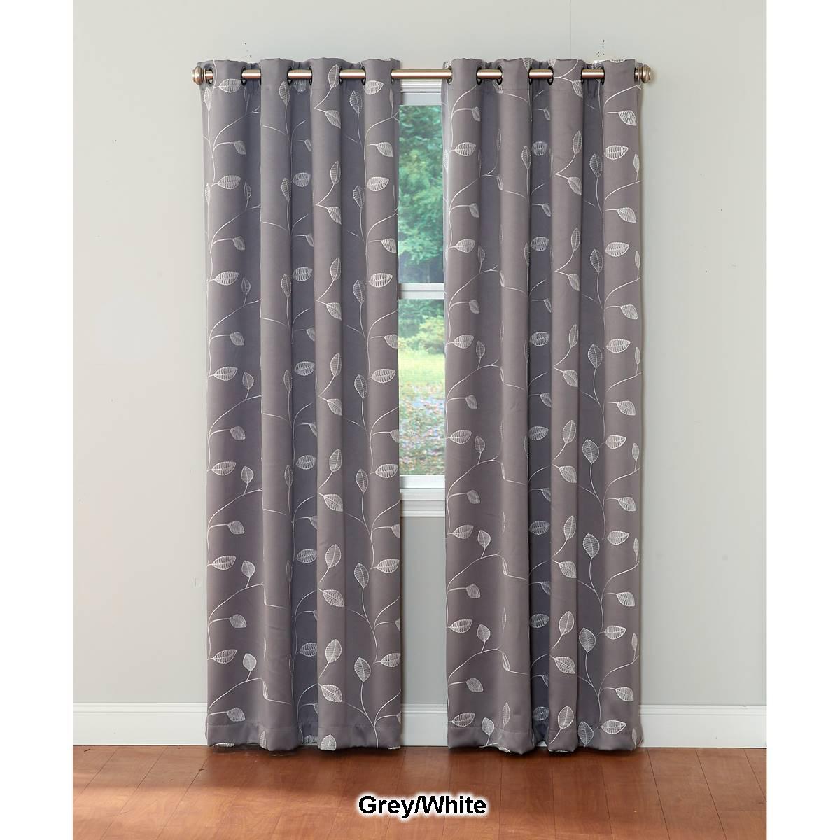 Description Birch blackout grommet panel features embroidered leaves on a blackout fabric. This panel comes in four colors sure to work with your décor. While the majority of...